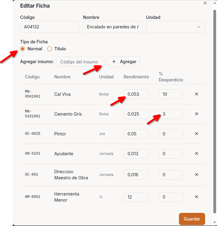 Agrupa insumos por partida, determina rendimiento por unidad de medida, una ficha, muchos proyectos, edita a tus necesidades