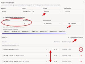 Gráfica de Gantt, ruta critica de tu proyecto, estimación de insumos por semana de ejecución, cotizaciones, bodega, todo gestionado de una vez.